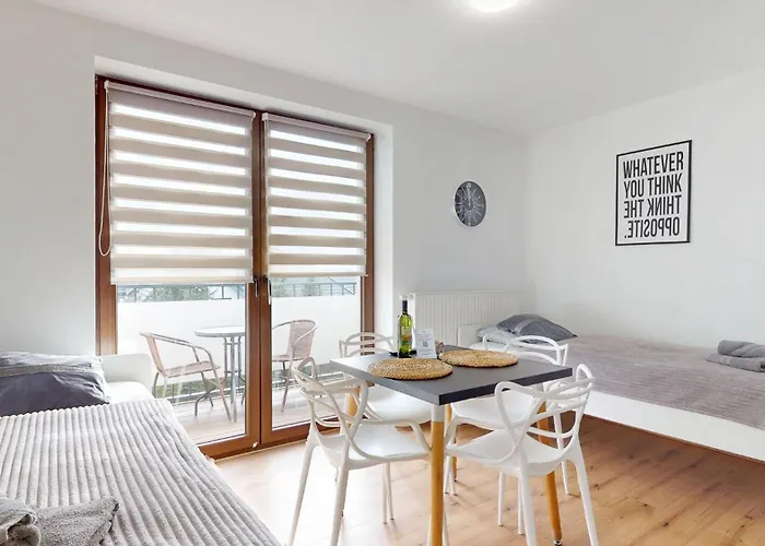 Mezi další zařízení patří mikrovlnná trouba, chladnička a pračka, které slouží k samoobsluze. Apartmán je jen 56 minut jízdy na letiště Letiste Katowice.